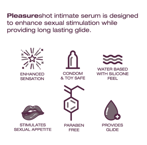 Pleasureshot is water-based with a silky, silicone-like feel and is condom and toy safe, designed for effortless pleasure and comfort.