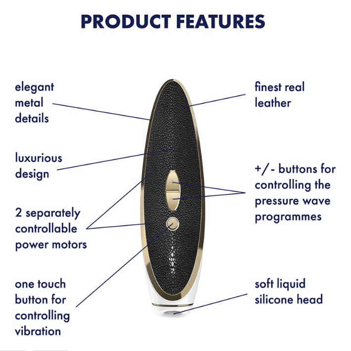 Adorned in leather and gold detail, this luxury gem pampers your clitoris with a touch of extravagance!